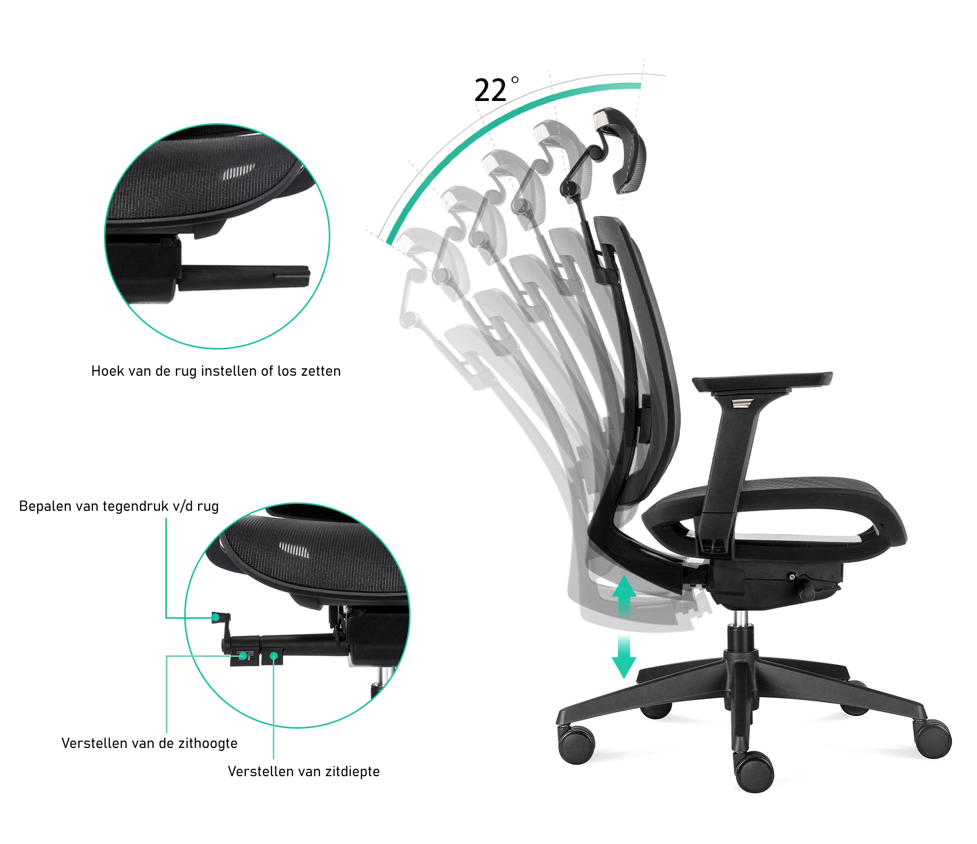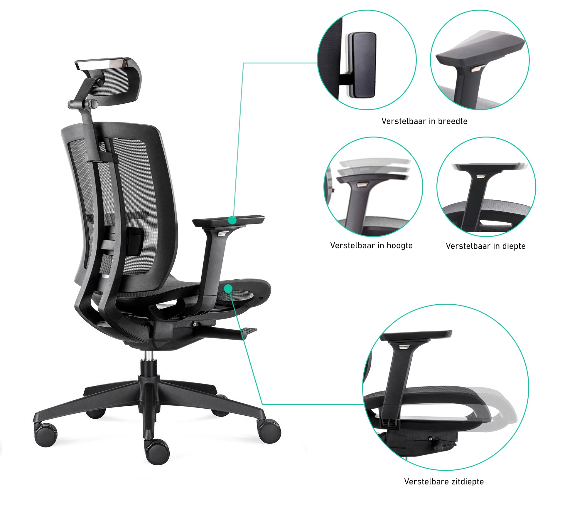 Als u bij een bureaustoel denkt aan uw gezondheid, dan komt als eerst de ergonomische instelmogelijkheden bij uw op.