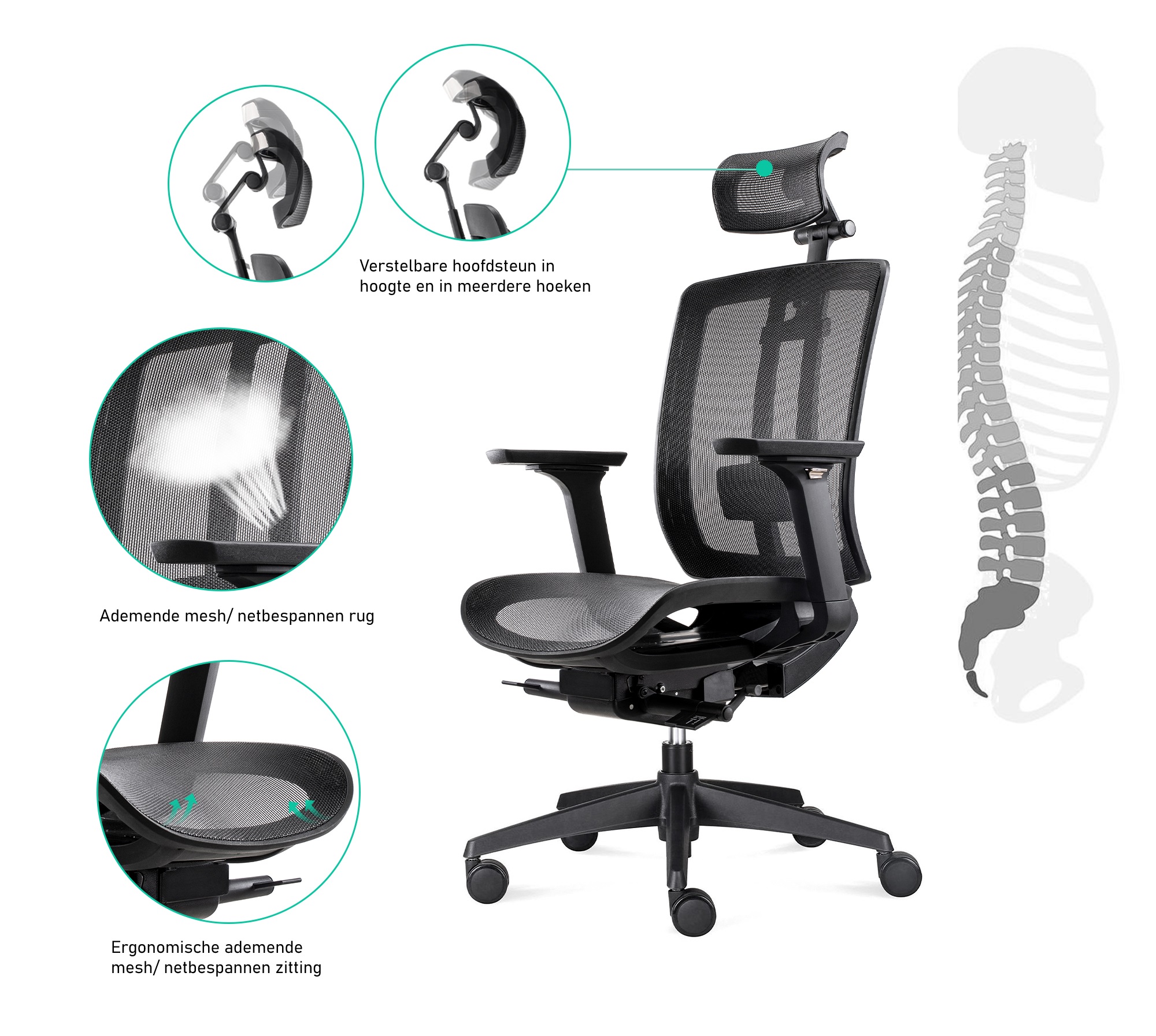 Deze bureaustoel is ook leverbaar met hoofdsteun