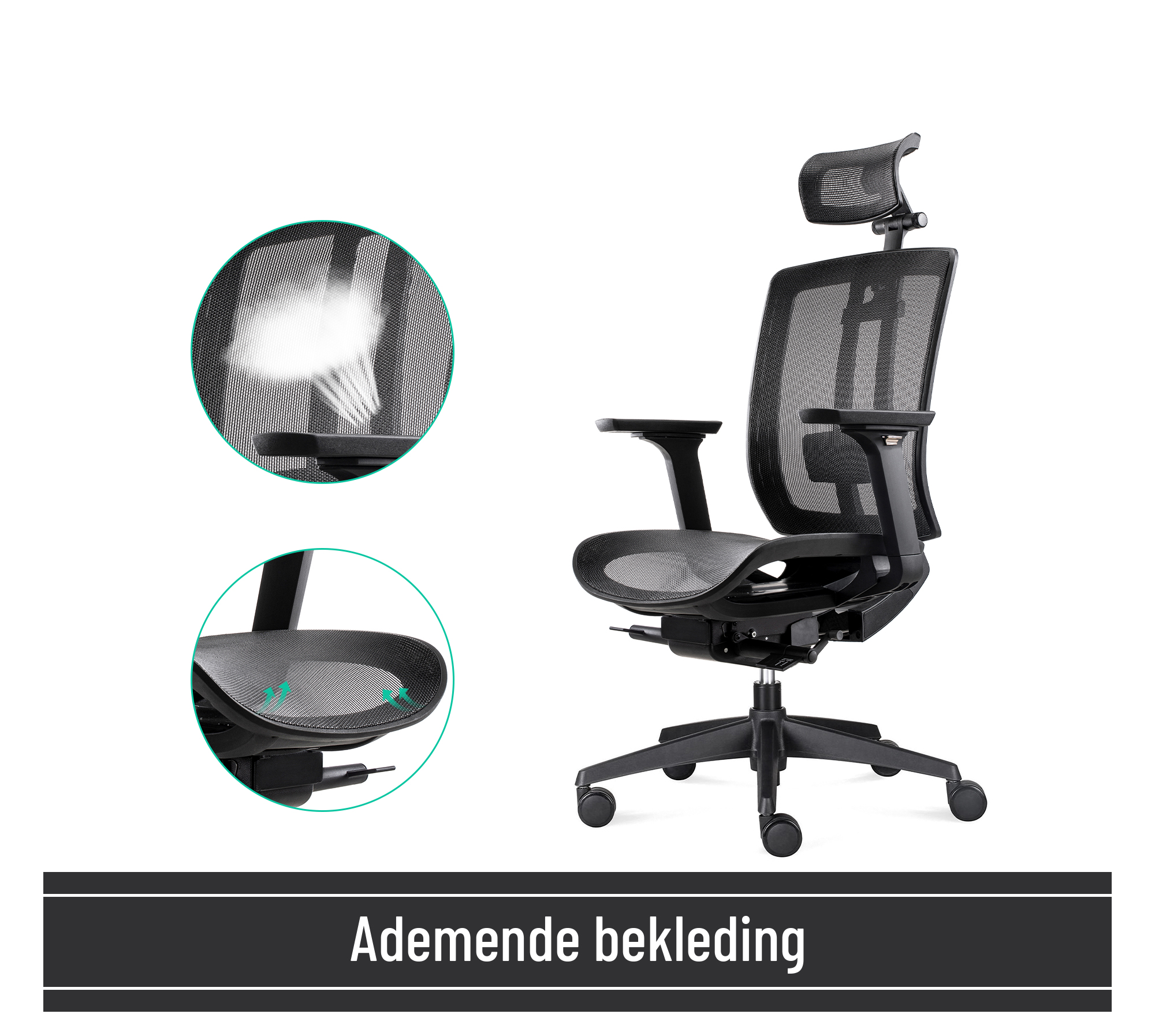 – De zitting van zwart mesh-netbespanning is ademend en biedt ultra comfort.