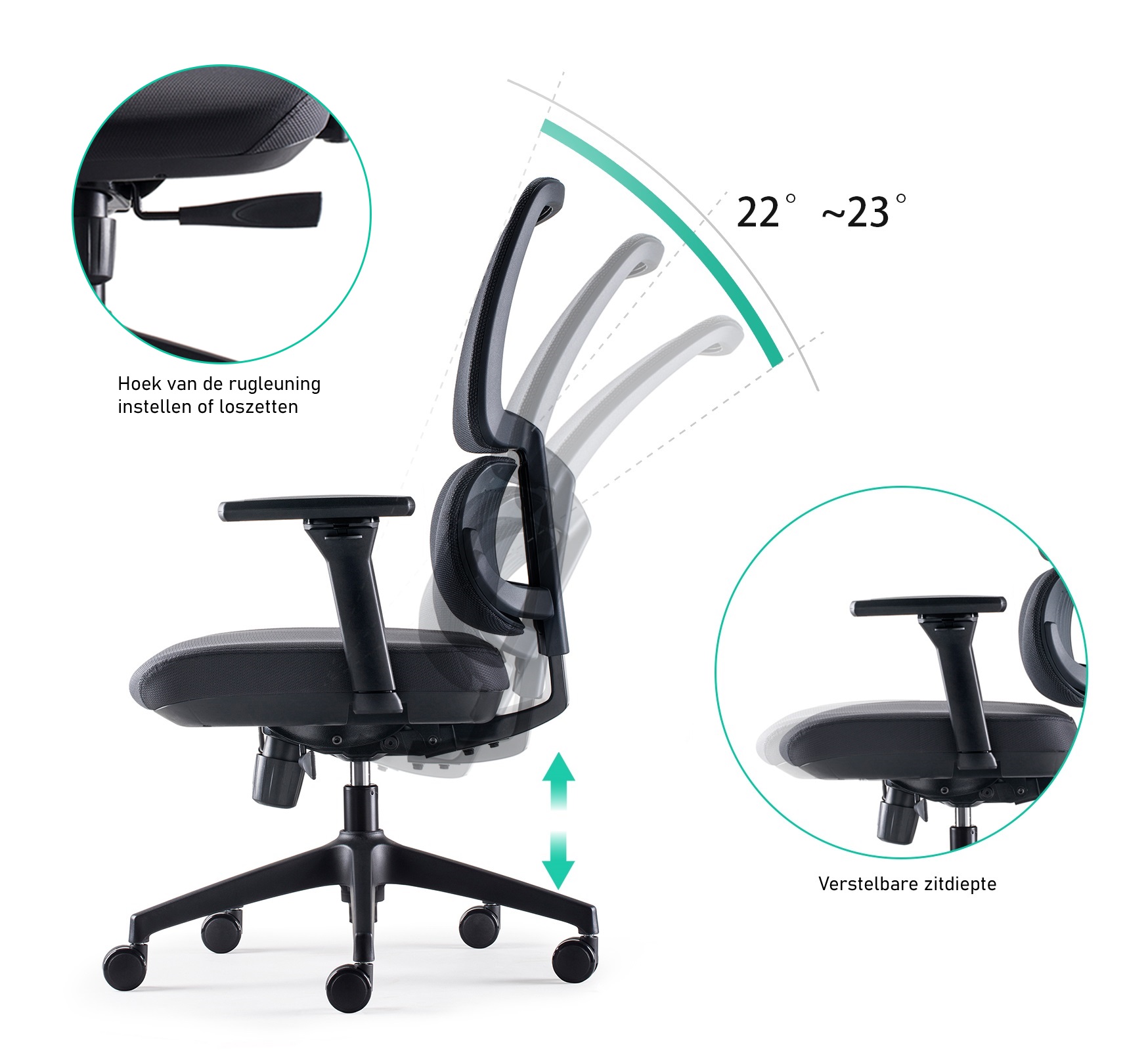 – Met de zitdiepteverstelling kunt u de stoel aanpassen aan uw lengte en zitbehoeften, wat vooral belangrijk is voor lange mensen.