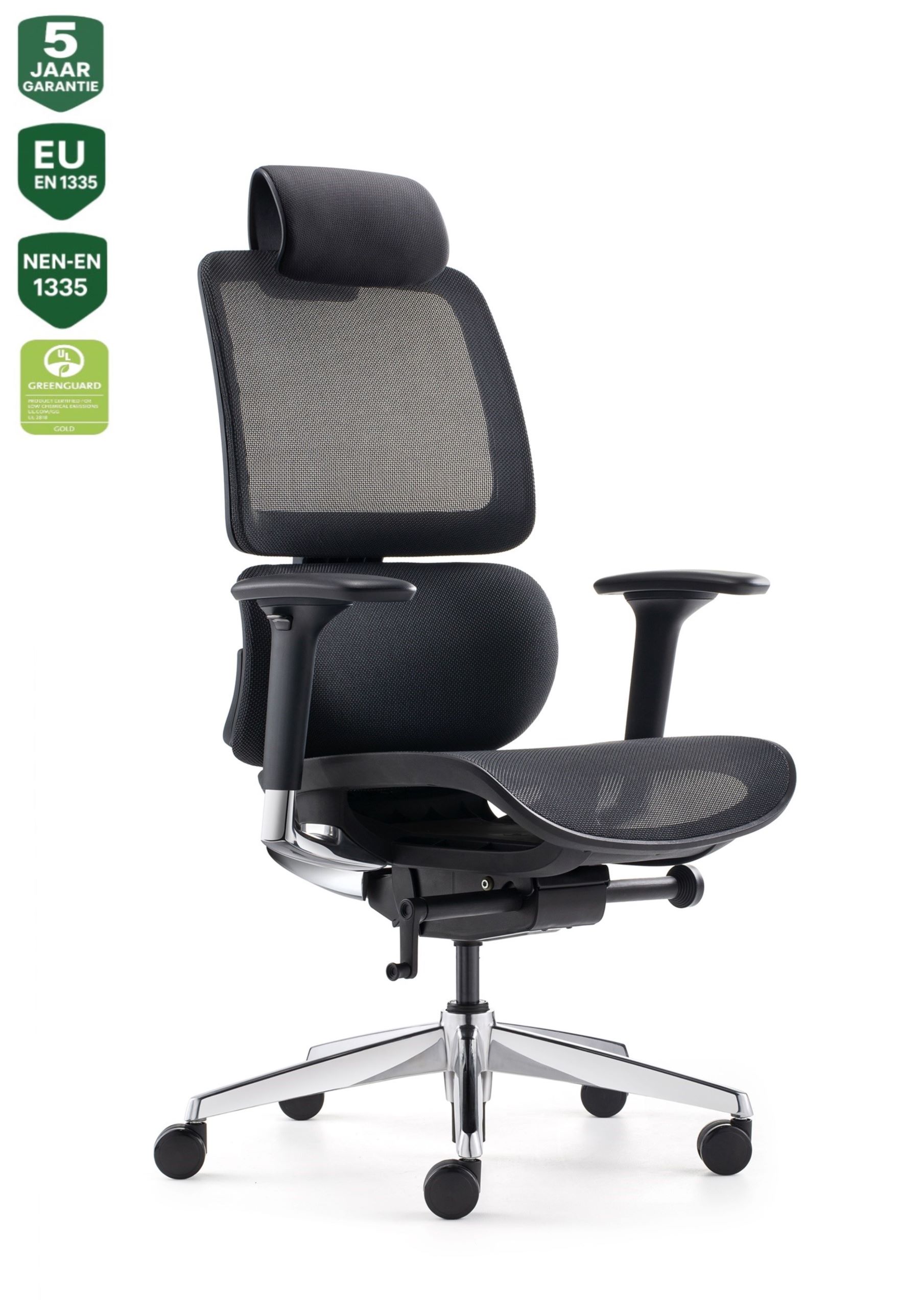 – Deze bureaustoel beschikt over het Greenguard Gold Certificaat, wat betekent dat het voldoet aan strenge normen voor lage chemische uitstoot en milieuvriendelijkheid.