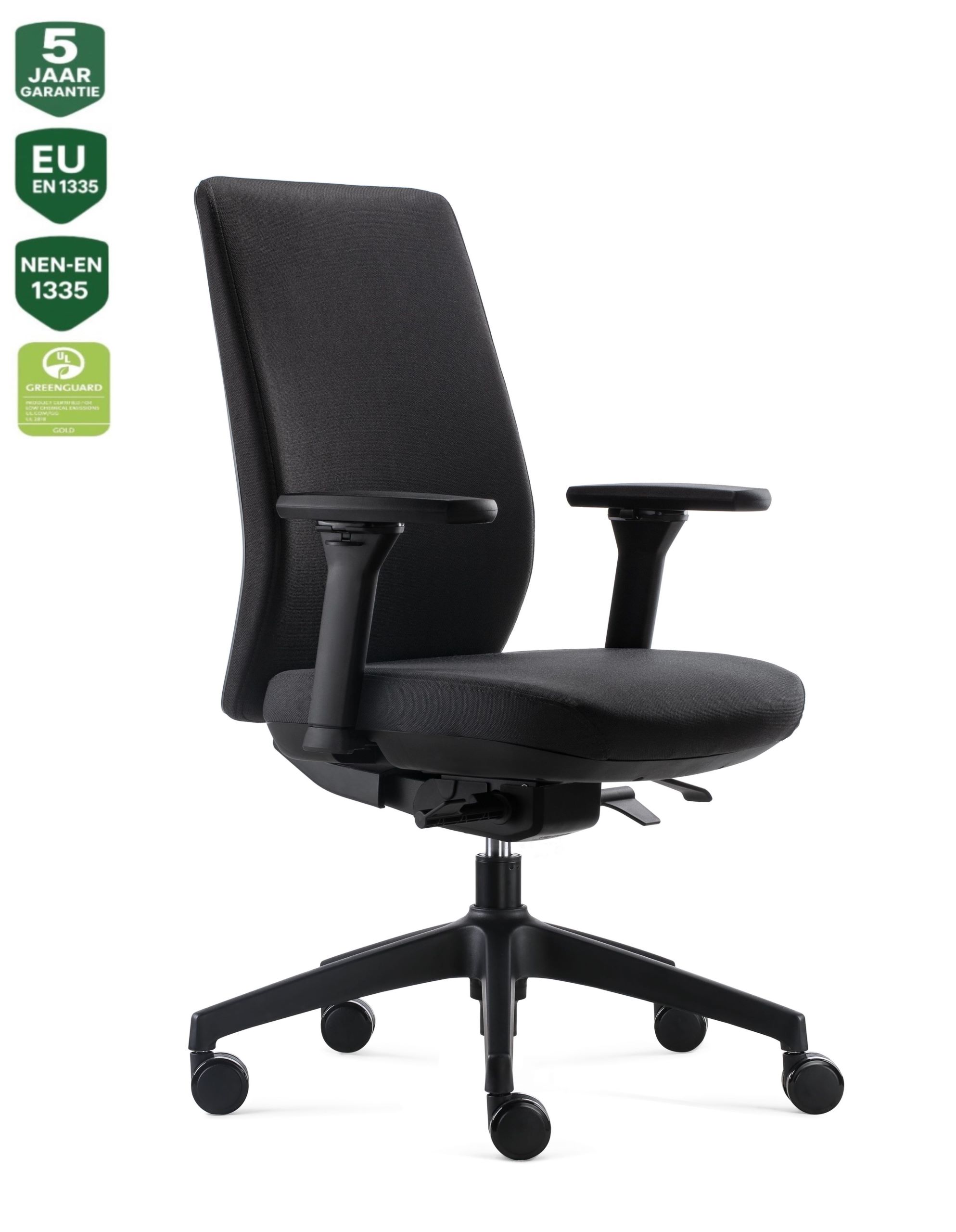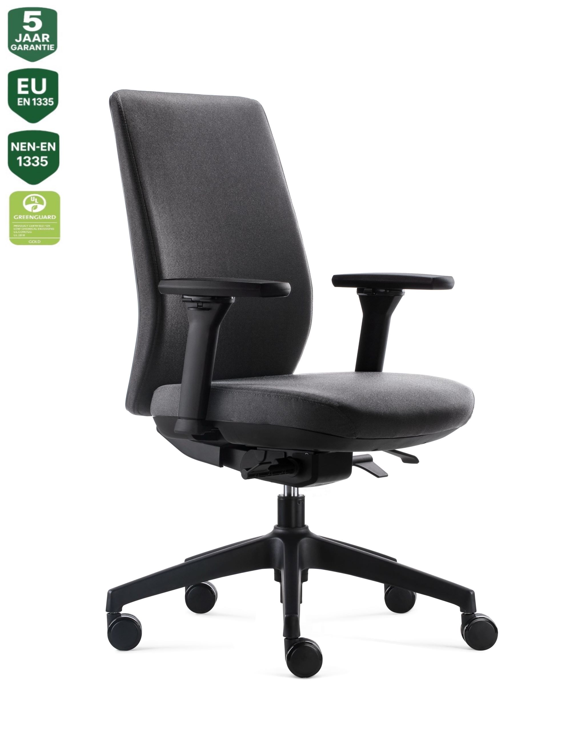 – Deze bureaustoel is getest en goedgekeurd volgens de ANSI/BIFMA x 5.1-2011 normen door de TÜV Sud, en voldoet aan de EN-1335 en Arbo norm, wat de hoogste kwaliteits- en milieustandaarden onderstreept en garandeert.