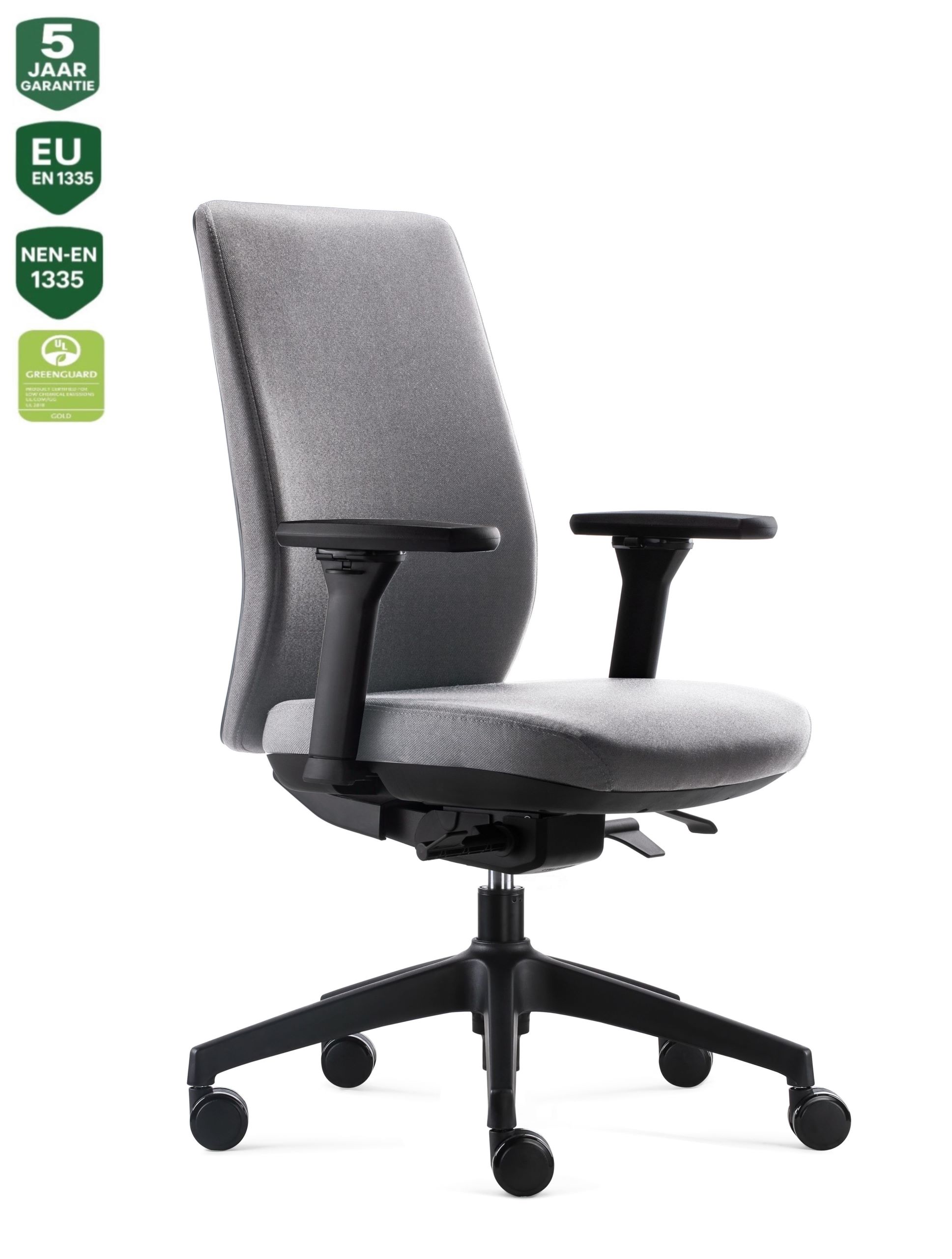 – Deze bureaustoel beschikt over het Greenguard Gold Certificaat, wat betekent dat het voldoet aan strenge normen voor lage chemische uitstoot en milieuvriendelijkheid.